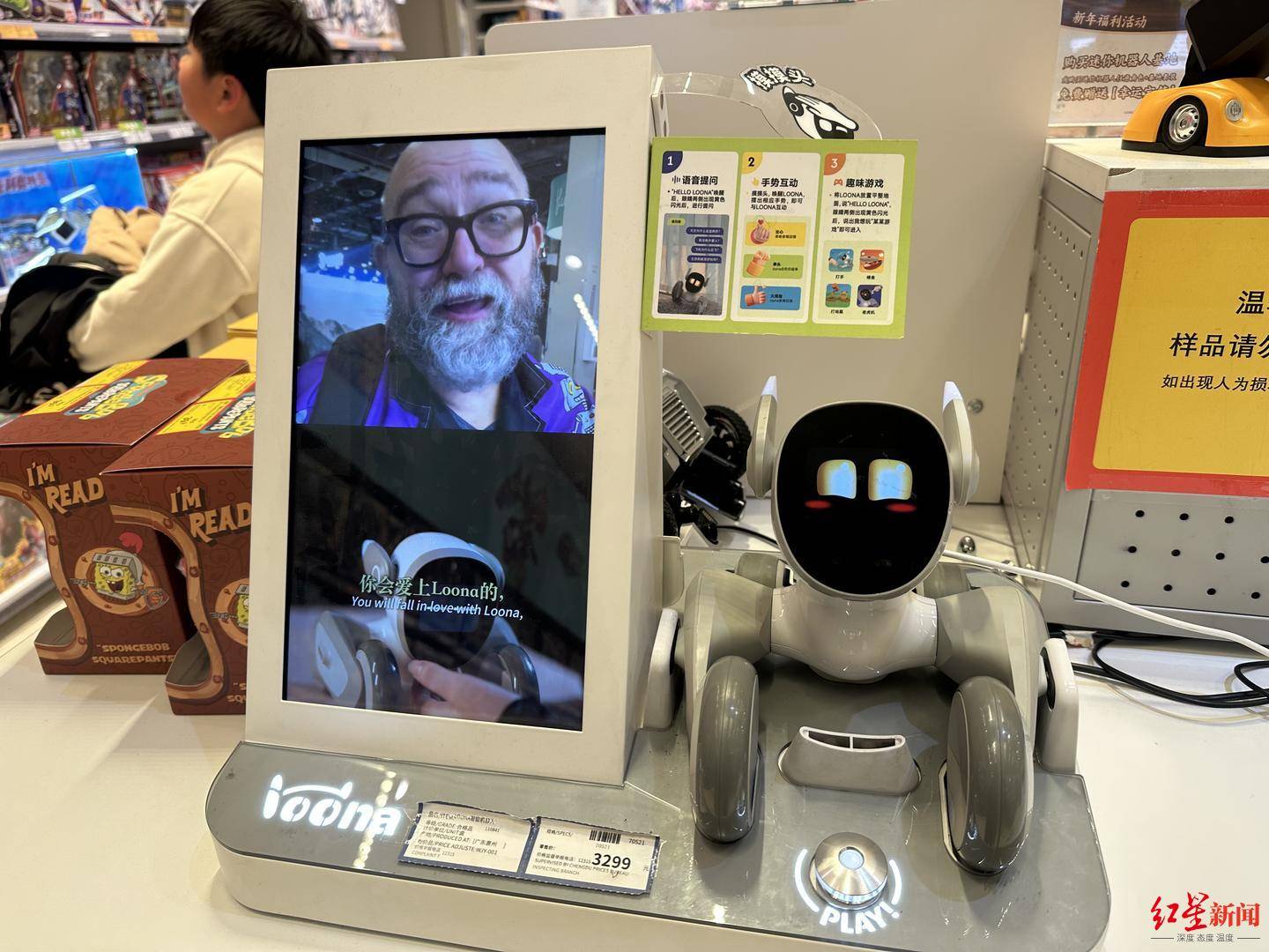 在玩具反斗城玩具店,Loona智能机器人、AI智趣喜洋洋等多款AI玩具集中亮相,涵盖游戏互动、人脸识别、智能跟随、知识启蒙、编程学习等多种功能,即便部分店员对操作尚不熟悉,依旧能吸引家长与孩子驻足体验。在走访时,红星新闻记者看到,成都仍有部分小型玩具店尚未引入AI玩具。